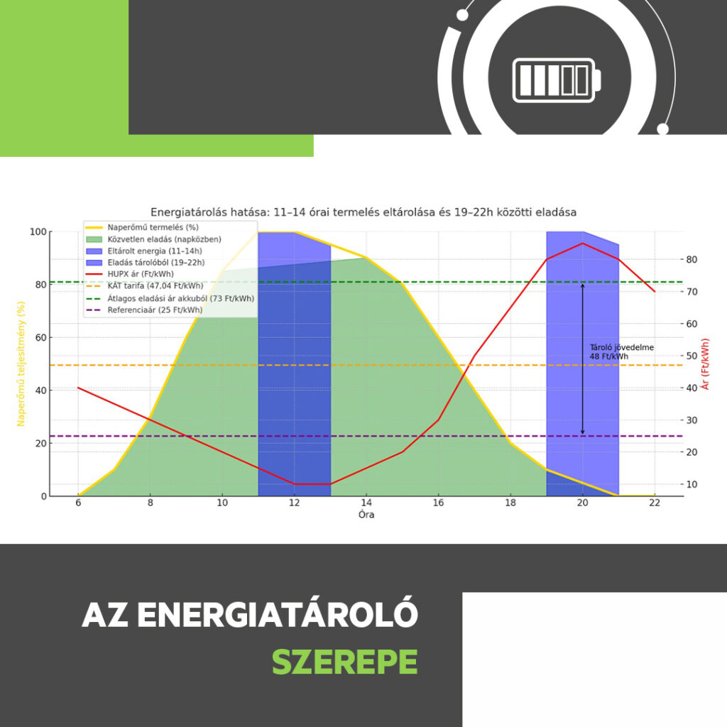 Az energiatároló által saját felhasználásra elmentett, a napelemes rendszerből származó visszwatt veszteség csökkentése.