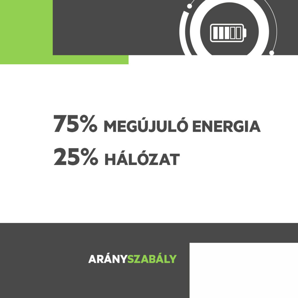 A Jedlik Ányos Energetikai Program pályázatainál alapvető követelmény, hogy az energiatárolóba betáplált energia legalább 75%-a megújuló energiaforrásból, például napelemekből származzon. Ez a „75%-os szabály” azt jelenti, hogy az éves töltés legfeljebb 25%-a származhat a hálózatról.